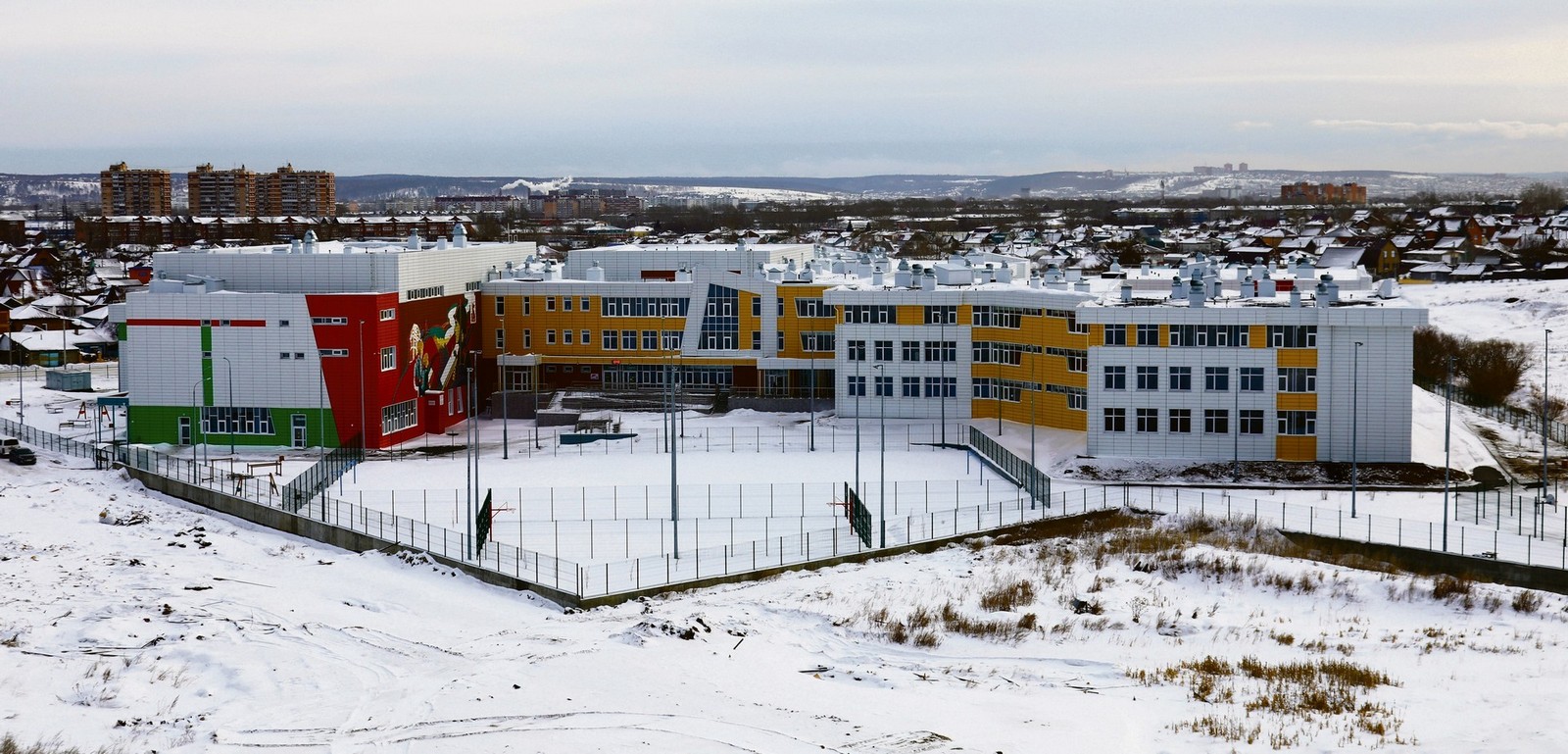 Окна здесь, кстати, выходят на новую, самую большую в городе школу № 58 имени 80-летия Великой Победы.