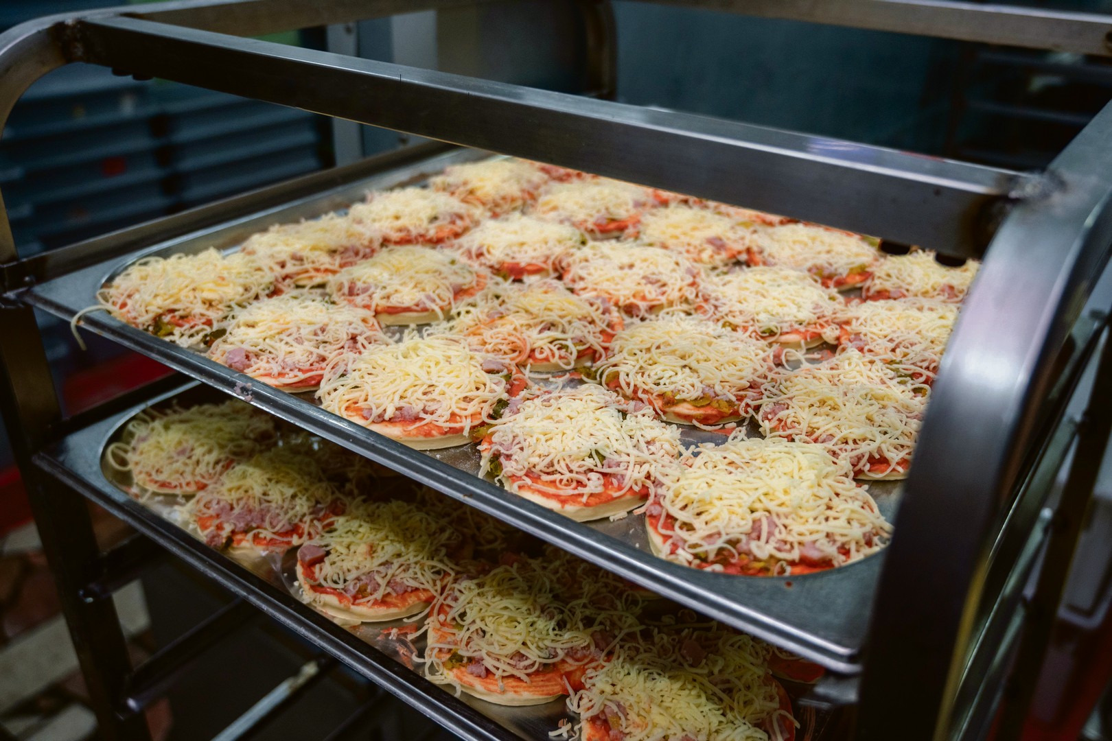 Пицца отправлена на заморозку, и теперь коллектив приступает к изготовлению творожников. Схема производства похожа, ингредиенты другие.