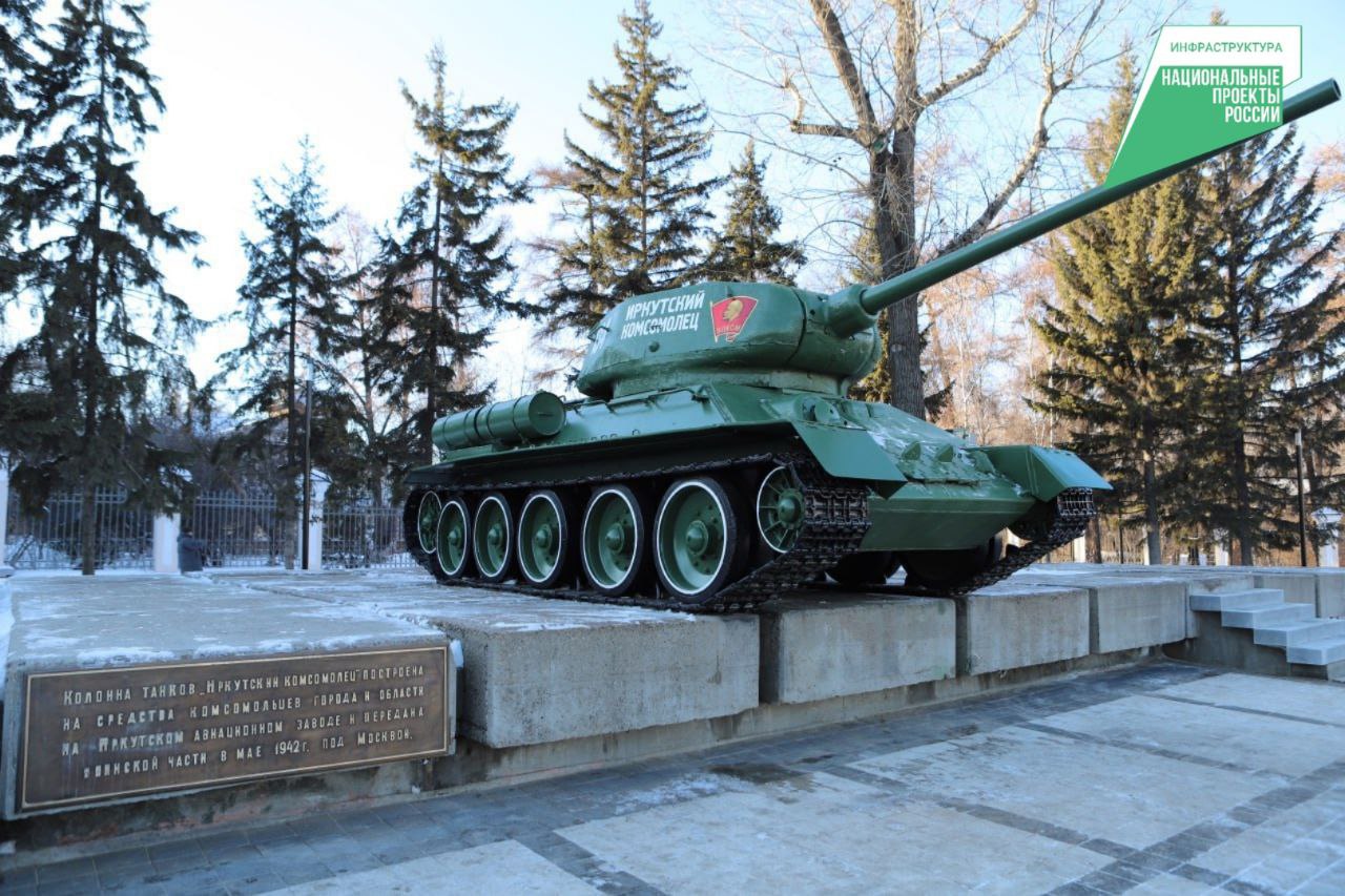 Памятник «Танк «Иркутский комсомолец» объектом культурного наследия и символом воли, смелости, стойкости советского народа в борьбе с фашистской Германией. В 1941 году по инициативе комсомольцев Иркутского завода тяжелого машиностроения были собраны деньги и построена на Иркутском авиационном заводе первая колонна танков «Иркутский комсомолец». В воинские части СССР она поступила в мае 1942 года. Впоследствии на фронт направлялись еще несколько танковых колонн, сделанных на средства жителей Иркутской области. Танк, который установлен в столице Прибайкалья, произведен в 1944 году на Нижнетагильском танковом заводе. Свой боевой путь он закончил в Праге в мае 1945 года.