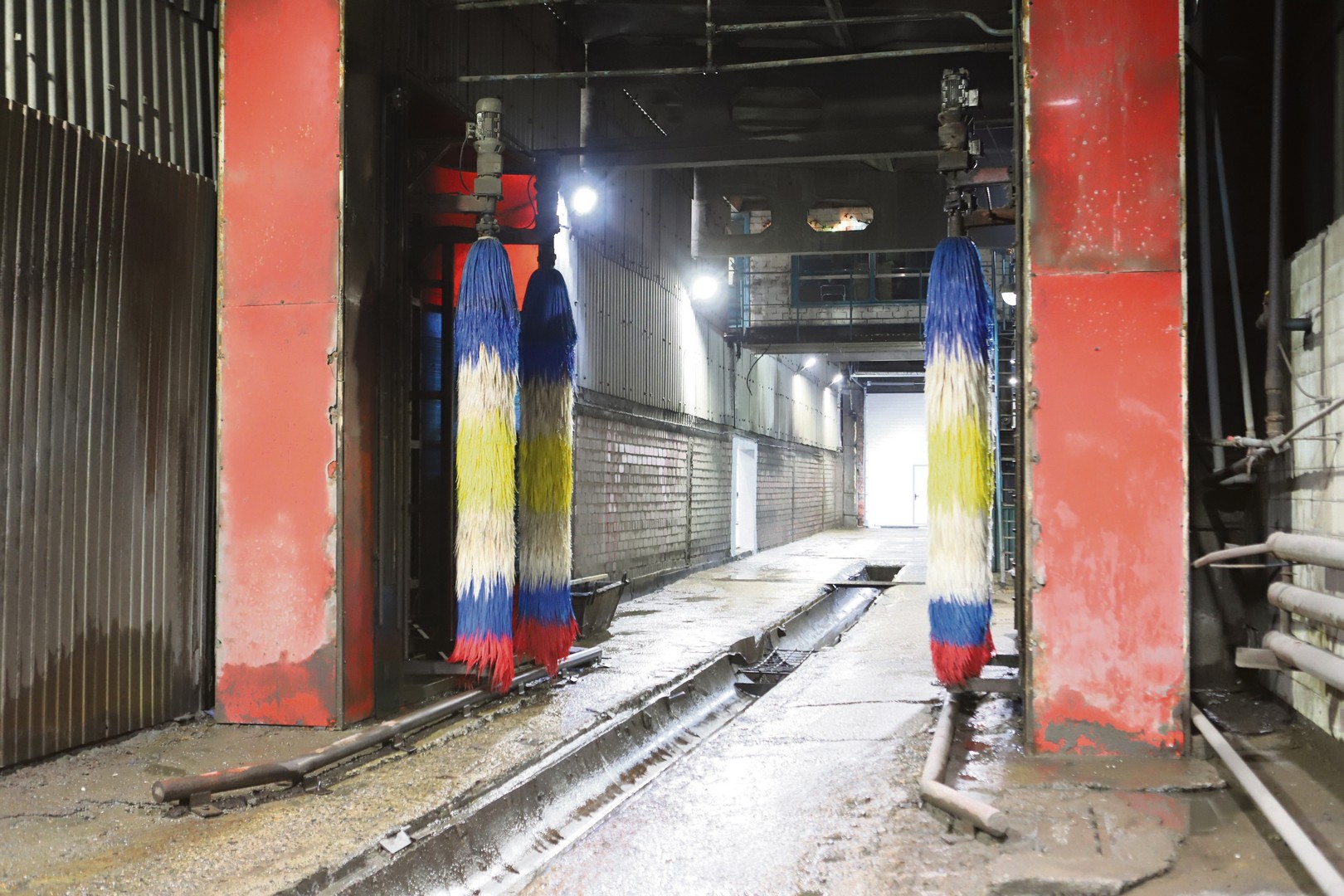 В новом моечном боксе тепло и светло, здесь провели ремонт, установили новые ворота с электроприводом для сохранения теплового контура и автоматизации заезда. Движение на линии регулируется световой сигнализацией, что исключает ошибки водителей и столкновения. В «Иркутскавтотрансе» готовят, кстати, проект модернизации старой моечной установки (на фото) — это позволит выйти на принципиально новый уровень обслуживания. Этот зеленый НЕФАЗ только что отмыли пеной, щетками и начисто ополоснули перед выходом на городские дороги. И что очень важно: все это в автоматическом режиме — благодаря новому автомоечному комплексу. А раньше, когда старое оборудование не справлялось, водителям приходилось доводить до блеска свои машины в том числе и вручную