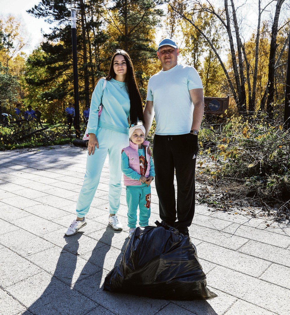 Глава комитета городского обустройства Сергей Гаврин с женой Анной и дочерью Викторией. Семья регулярно бывает на субботниках, поэтому четырехлетняя Виктория уже знает значение этого слова и наравне с родителями смело берется за уборку