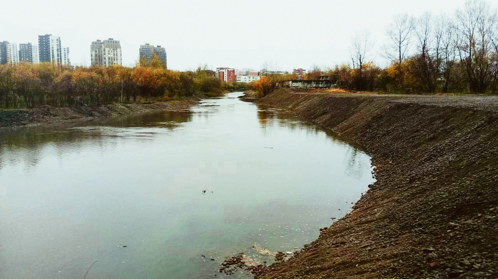 Берег Ушаковки, ближайший многоквартирный жилой дом № 54и на улице Баррикад. Эта территория — начальная точка километровой дистанции по очистке русла на 2025 год. Один километр отсчитывается по прямой линии, без учета изгибов витиеватой реки, и доходит до дома № 164/3 на улице Ипподромной. Специфика работы на реках — это движение против течения. То есть в 2023 году подрядчик начинал работу со стороны Ангары и все время движется вверх, в сторону предместья Копай.