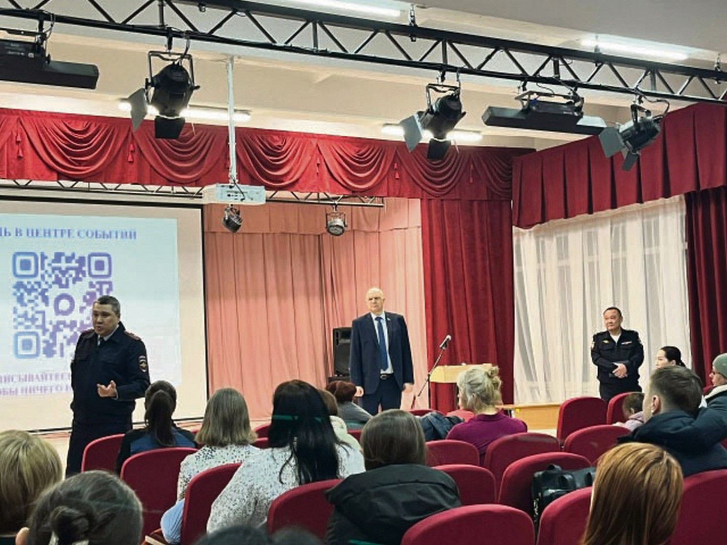 Депутат Александр Квасов убежден, что представитель от жителей избирательного округа в думе города не должен ограничиваться только решением проблем благоустройства, например. Есть и другие важнейшие задачи. На фото — встреча жителей избирательного округа № 15 с сотрудниками полиции. Речь идет о профилактике мошенничества