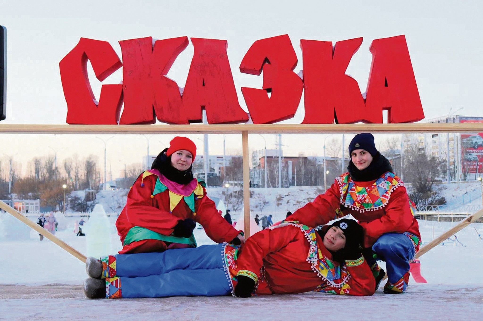 Переводя дух после спусков, смотрим спектакль, играем с аниматорами, обязательно фотографируемся с плюшевыми персонажами и в тематических фотозонах, а с наступлением темноты — со светящимися скульптурами, стреляем птицами из огромной рогатки и в мишень тира, ездим верхом на лошадках и на собачьей упряжке… Сколько же развлечений в одном месте! И, конечно, без главного сказочного героя не обойтись: Дедушка Мороз будет встречать гостей каждый день во время каникул.