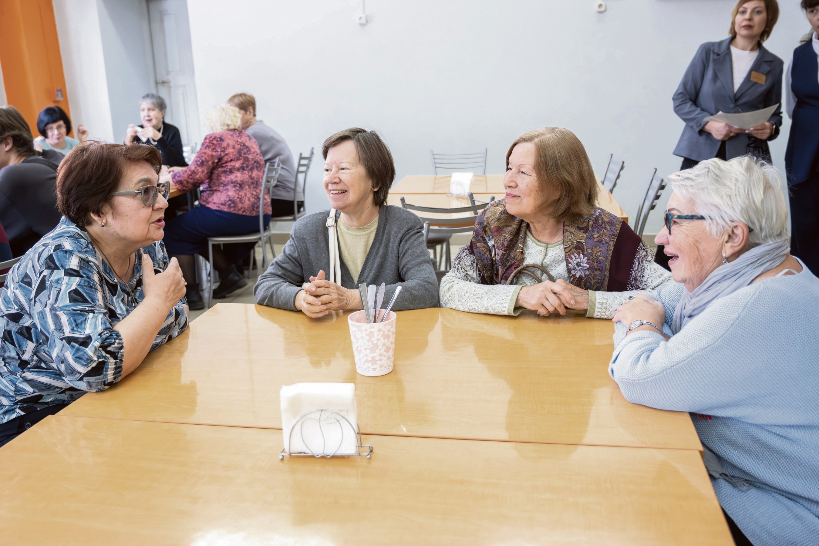Друзья тут же начинают спрашивать друг друга о тех одноклассниках, кто не пришел сегодня, делиться забавными случаями из прошлого. Рядом оживленно разговаривают ученицы тоже 10 «А», только школу они окончили в 1973 году! Надежда Болдакова и Людмила Сазонкина вспоминают, как приходили сюда на 50-летие выпуска.