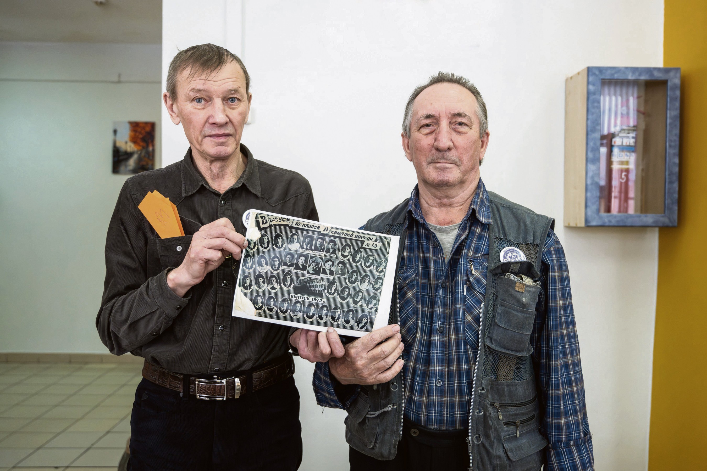 В день открытых дверей в школе № 15 выпускники принесли свои фотографии. Геннадий Евгеньевич Войцешко (справа) и Игорь Константинович Черных окончили школу в 1972 году! «Мы выпустились 53 года назад. Учителей знакомых сегодня не встретили, но было интересно посмотреть, как все изменилось, вспомнить, как учились в нашем 10 «В» и как сбегали с занятий, чтобы поиграть в футбол на соседнем поле, — делится воспоминаниями Геннадий Евгеньевич. — Уроки труда хорошо помню: пока мы строгали палки, девчонки на домоводстве готовили печенье и нас потом угощали»
