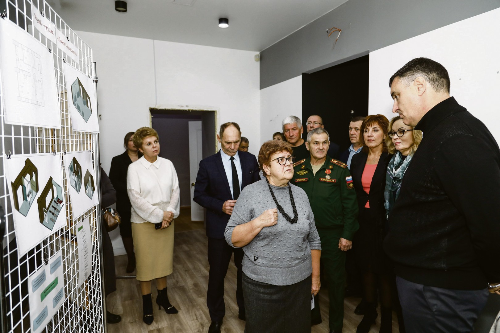 — Вот здесь можно организовать большой зал для встреч: устроить зрительские места и установить интерактивную музейную панель, — показывает на месте Любовь Николаевна. — Для этого необходимо разобрать вот эту перегородку. Она не несущая — проектировщики и строители говорят, что этот вопрос легко решаем. Конечно, здесь появится гардероб, будут благоустроены туалетная комната, учебный класс, кабинет для педагогов-организаторов.