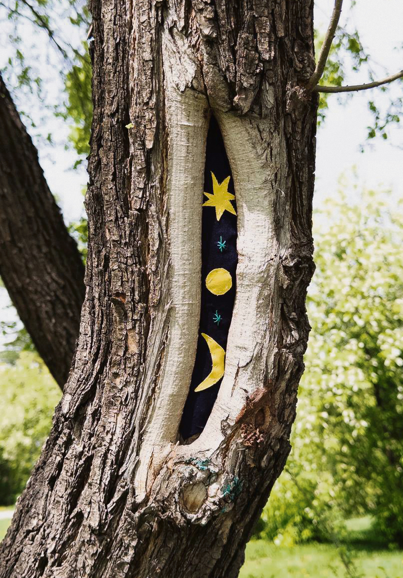 Красиво! Художница Анна Макарова оставляет тканевые аппликации в дуплах деревьев и на спилах стволов. Они выглядят как иллюстрации к сказкам и цепляют взгляд спешащих по делам горожан. И это экологичный стрит-арт: время и погодные условия разрушают творчество автора, не загрязняя окружающую среду и освобождая место для других художественных работ