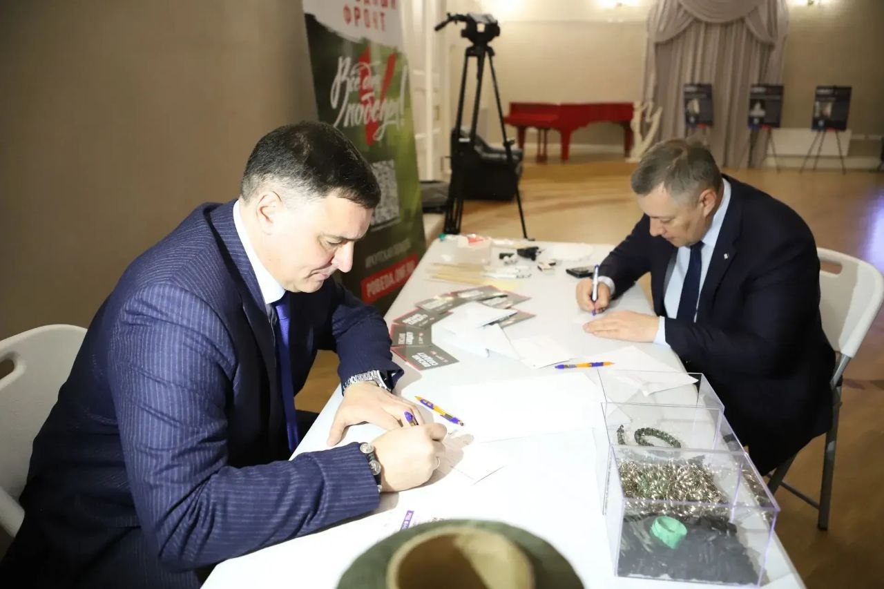 Все желающие могли присоединиться к акции, которую провели представители Народного фронта: написать письма военнослужащим, изготовить окопные спички или многофункциональные брелоки из паракорда. Игорь Кобзев и Руслан Болотов написали письма бойцам на передовую с пожеланиями успехов и побед.