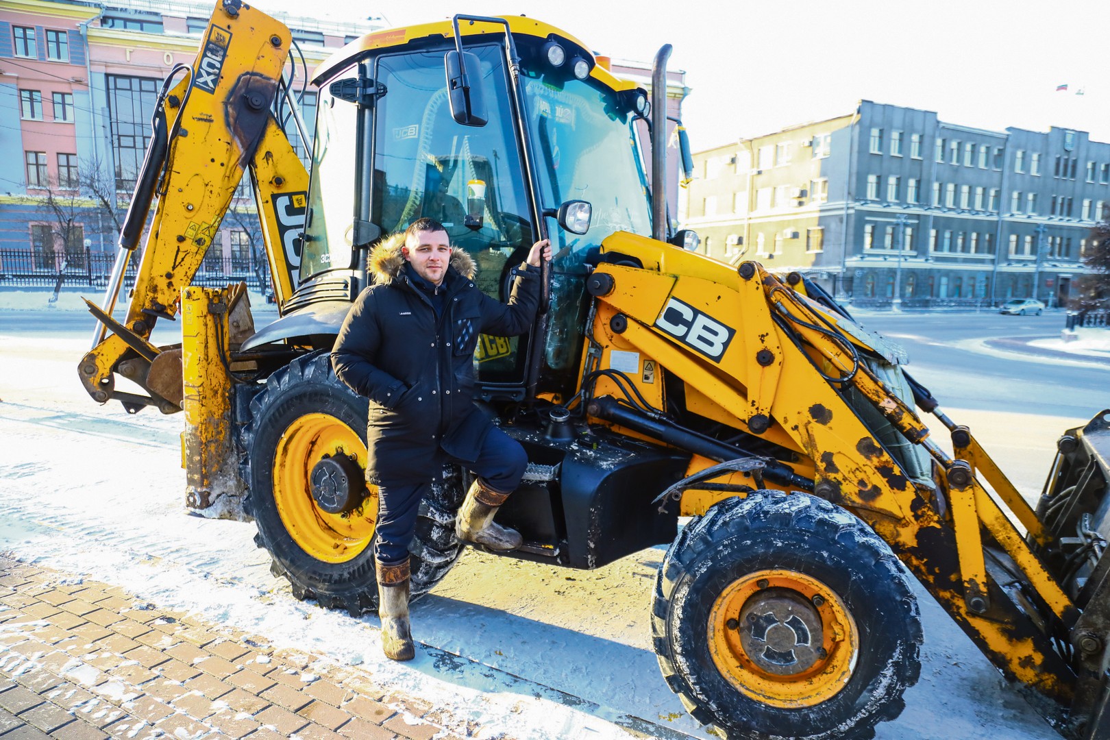В новогодние праздники водитель погрузчика Виктор Митюков и его железный напарник трудились почти без выходных, с восьми утра до восьми вечера. «За 12-часовую смену обычно успеваем собрать снег с обочин, примерно 20 километров городских дорог. Это сотни тонн…» — рассказывает Виктор (он работает в «Иркутскавтодоре» с 2017 года) и подтверждает мнение коллег: зима нынче богата на осадки