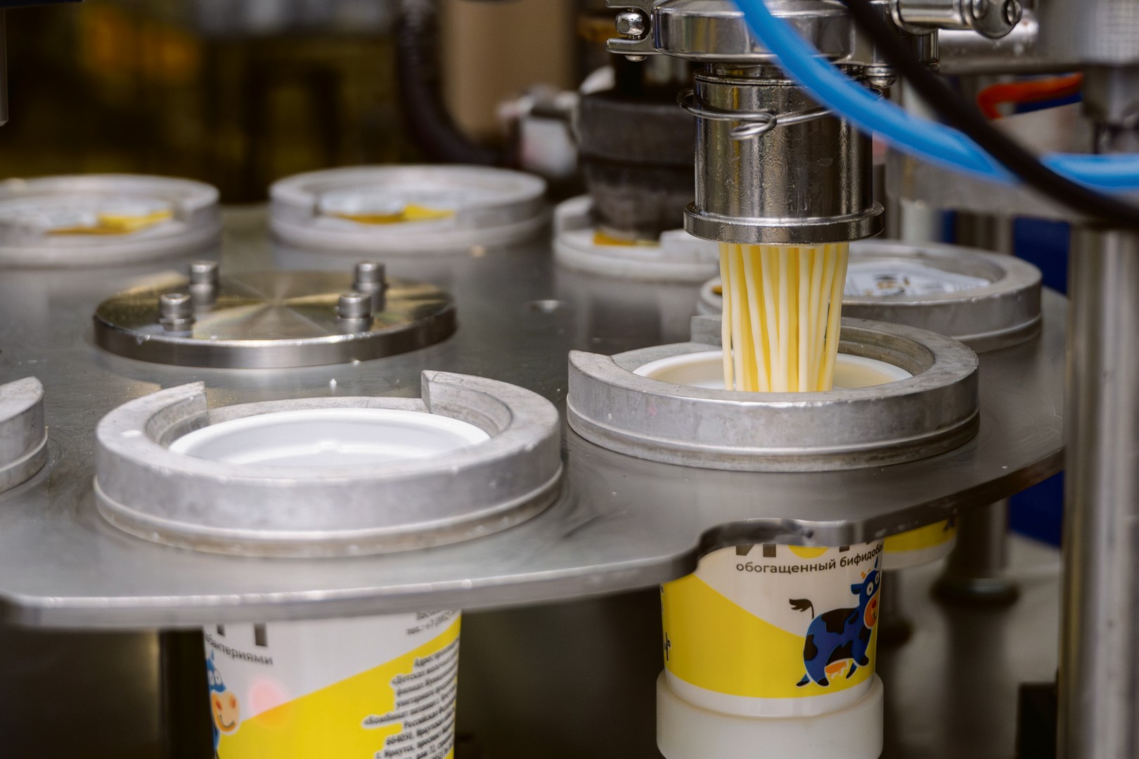 Один из самых красивых процессов на молочной кухне иркутского «Комбината питания» — разлив готового продукта в тару. На заполнение 200-граммового стаканчика требуется всего одна секунда! На фото вы видите банановый йогурт, а еще здесь выпускают вишневый, клубничный, персиковый, малиновый, черничный, злаковый и многие другие