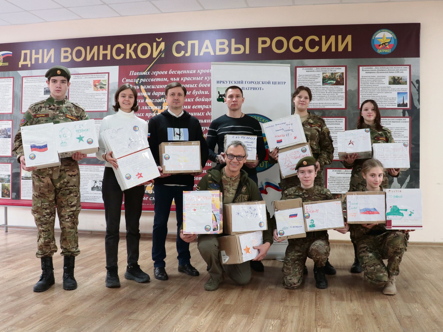 Перед началом чемпионата по военно-прикладным дисциплинам школьники написали письма-поздравления землякам — участникам СВО, которые вложили в посылки. Наполнение предоставили иркутские волонтеры Вадим Турушев, Антон Алексеев, Анна Бугерко и Константин Бондарев. «Подобные мероприятия мы проводим в течение четырех лет, — говорит Вадим Турушев. — Покупаем все необходимое для бойцов, а школьники рисуют рисунки, открытки, собирают в коробки. Потом вместе с детьми идем на почту. Все отправления адресные — для иркутян, в полк 1436. Мы были у наших ребят в зоне СВО, привозили им гуманитарную помощь. Когда человек выходит с линии боевого соприкосновения, ему нужно помыться, побриться, привести себя в порядок, перекусить. Вот все нужное для этого мы и отправляем землякам»