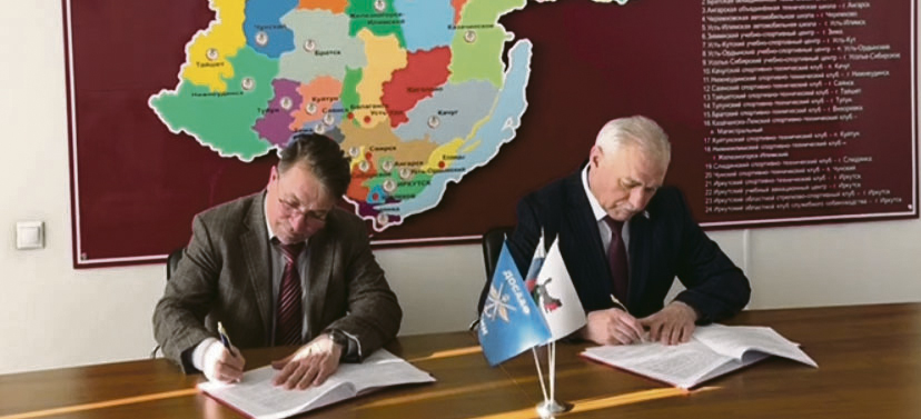 Исторический момент: президент Нотариальной палаты Евгений Воробьев (на фото слева) и председатель ДОСААФ России Иркутской области Алексей Лысков подписывают соглашение о сотрудничестве. Это значимый шаг в укреплении совместных усилий организаций по оказанию поддержки и помощи действующим участникам СВО и их семьям
