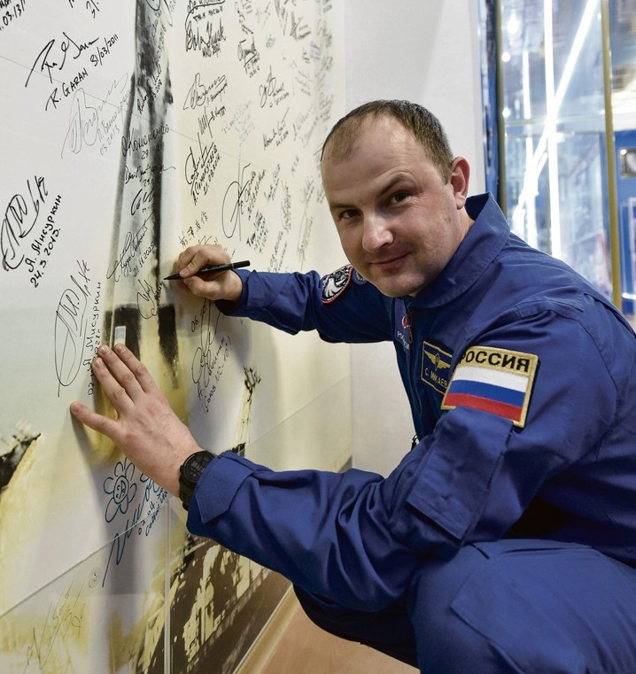 Предстартовая традиция: Сергей Микаев, как и все космонавты, оставляет свой автограф в Музее истории космодрома Байконур. Это происходит после контрольной «примерки» транспортного пилотируемого корабля «Союз МС‑28», когда экипаж проверил снаряжение и грузы, убедился в работоспособности бортовых систем и передал свои личные вещи для укладки в пилотируемый корабль. Сергей Микаев стал пятым космонавтом из Иркутской области! Ранее на МКС уже побывали Борис Волынов, Александр Полещук, Дмитрий Кондратьев и Анатолий Иванишин.