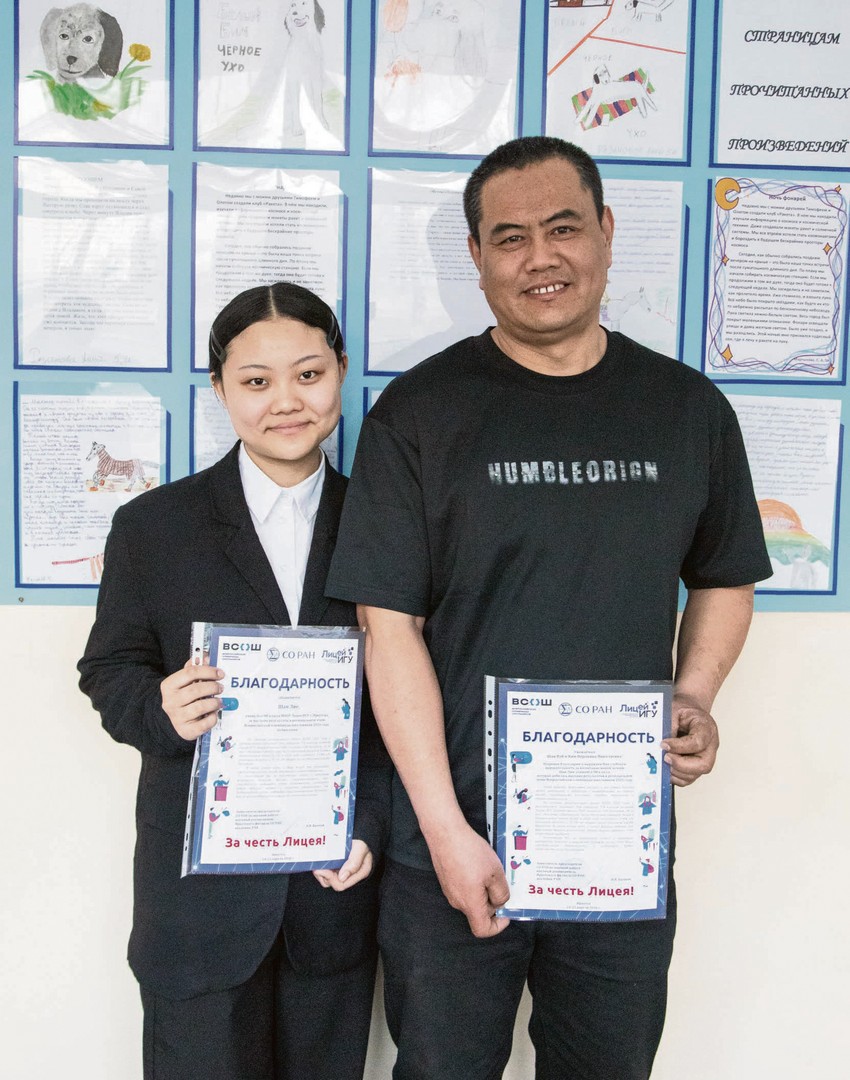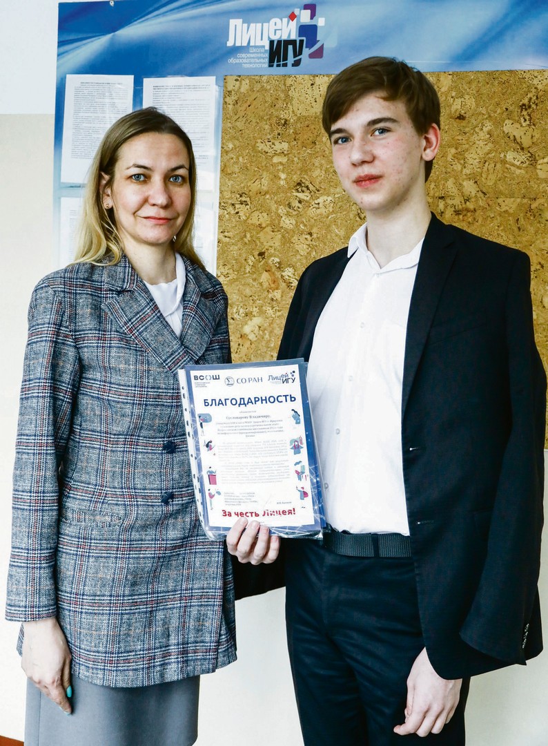 Гордые лицеисты получают награды из рук Дмитрия Гладкочуба — директора Иркутского филиала Сибирского отделения Российской академии наук. На протяжении семи лет лицей участвует в инновационном проекте «Базовые школы РАН»: юным талантам дают углубленные профильные знания и знакомят с миром науки на практике, подготавливая к профессии.