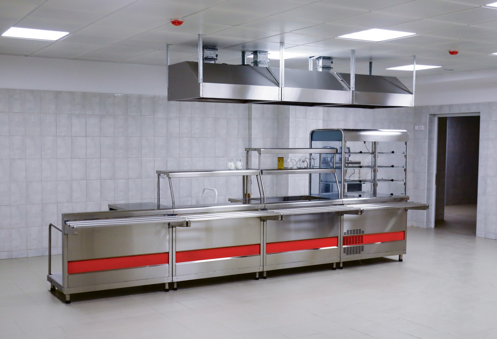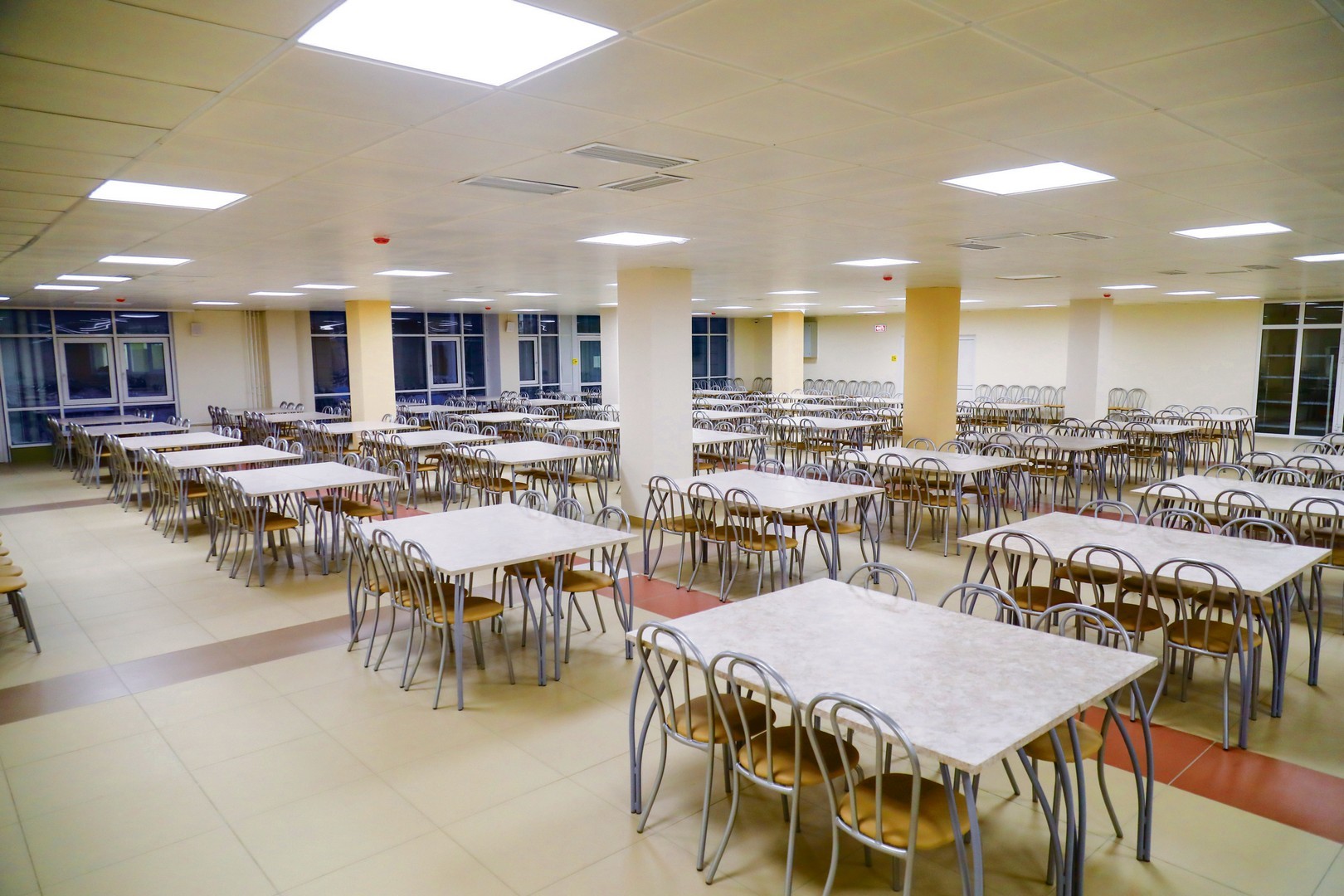 Рабочая зона пищеблока в новой школе сияет свежим кафелем и современным оборудованием, для поваров здесь создан максимальный комфорт, чтобы с хорошим настроением готовить правильное питание для детей. Большой и светлый обеденный зал вместит одновременно 720 человек — такого нет ни в одной действующей школе города