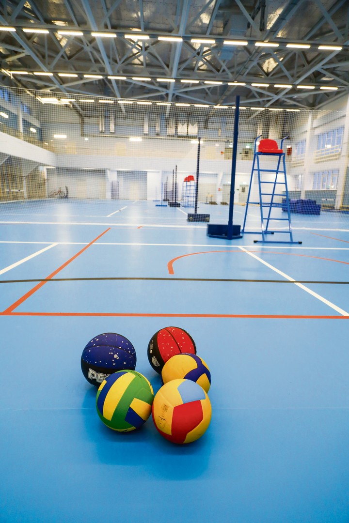 Гигантский спортзал, который скоро наполнится звуками ударов по мячу, свистками физрука и гомоном школьников. В нашем городе на сегодняшний день это единственное школьное пространство, где могут заниматься сразу три класса, причем разными видами спорта, включая командные — футбол и волейбол
