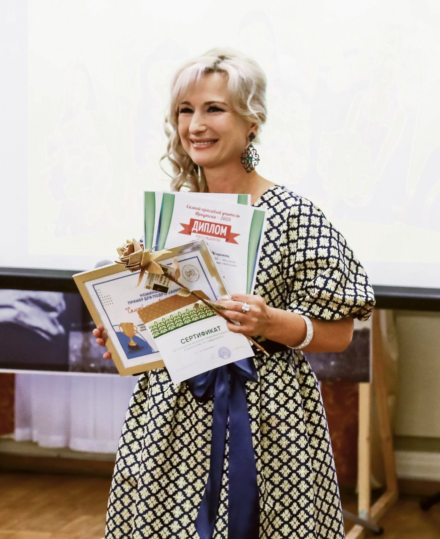 Немало было среди участников конкурса и преподавателей вузов. Они тоже не ушли с церемонии без подарков. Например, самым красивым профессором Иркутска — 2025 стала Анна Дымшиц. Анна Михайловна — специалист в области минералогии и геохимии верхней мантии Земли, дважды отмечена медалью с премией Российской академии наук. Ее поздравила партнер конкурса, основатель школы ментального здоровья Яна Третьякова и вручила сертификат.