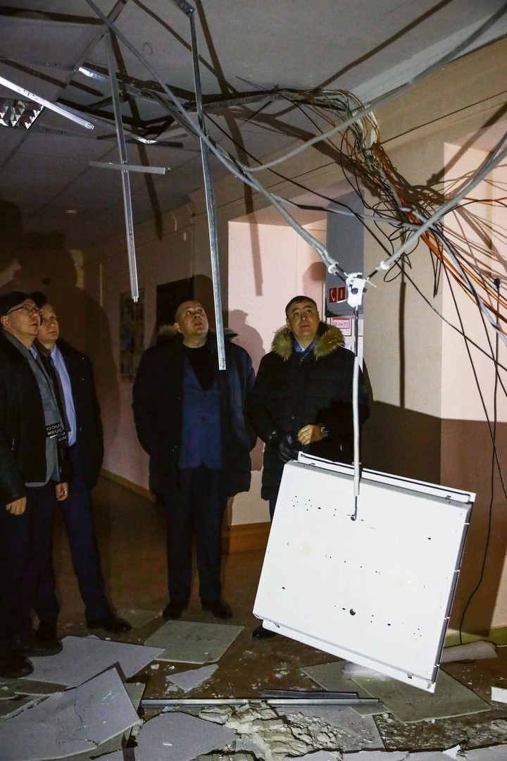 — Потолок необходимо вскрыть — убрать подвесную конструкцию и посмотреть на всем протяжении коридора, как обстоят дела с остальной частью штукатурки, — подытожил Руслан Болотов обсуждение решения проблемы с председателем комитета по градостроительной политике администрации города Иркутска Евгением Харитоновым, главой Свердловского округа Антоном Медко и начальником МКУ «УКС г. Иркутска» Александром Зыбайло. — Нужно провести комплексное обследование конструкций перекрытия здания, понять обстановку и в кратчайшие сроки провести ремонт.