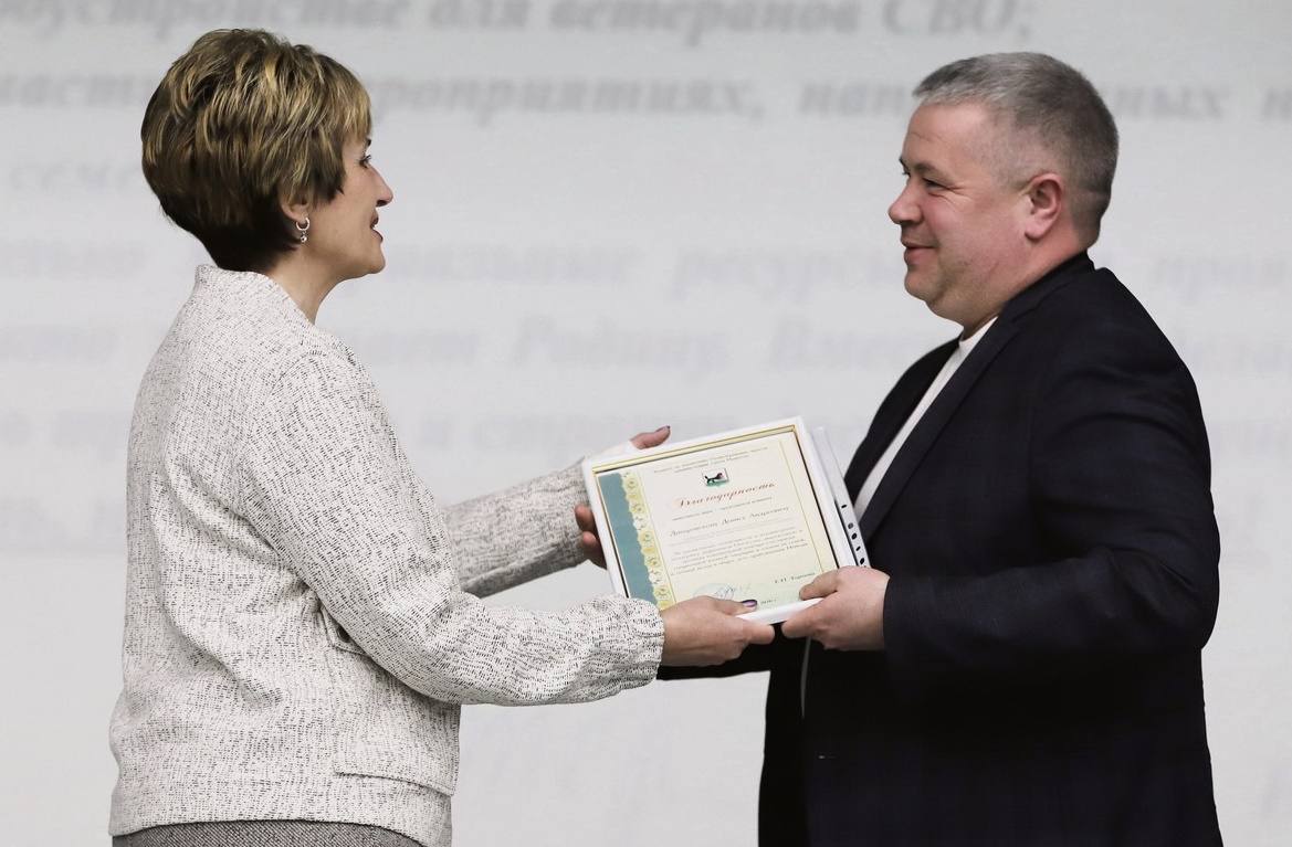 Глава Правобережного округа Елена Торохова вручила благодарственное письмо Денису Днепровскому, директору «Восточного управления жилищно-коммунальными системами». Коллектив управляющей компании в прошлом году приобрел для наших ребят «за ленточкой» подержанный ЛуАЗ-969м. Денис Днепровский вместе с дочерью Алисой, сыном Иваном и его другом Гордеем Князевым, учащимися иркутской школы № 69, своими руками приводили машину в порядок