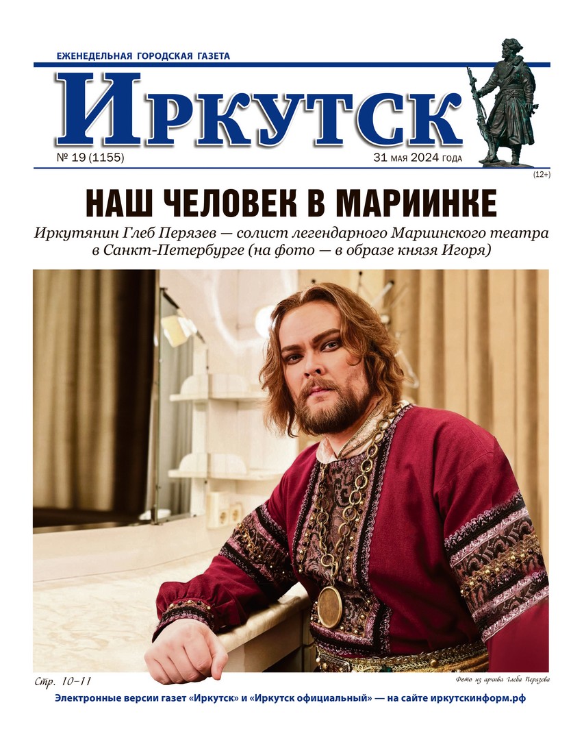 Полтора года назад «Иркутск» вышел в свет с такой обложкой: наш земляк в образе князя Игоря для заглавной партии одноименной оперы на сцене Мариинского театра. Тогда Глеб рассказал нашему еженедельнику, что в семье Перязевых ранее не было профессиональных музыкантов, все больше представители науки: так, родители Глеба — доктор и кандидат физико-математических наук Николай и Юлия Перязевы. Впервые его вокальные данные заметили в средней школе — на хоровом пении в гимназии № 25!