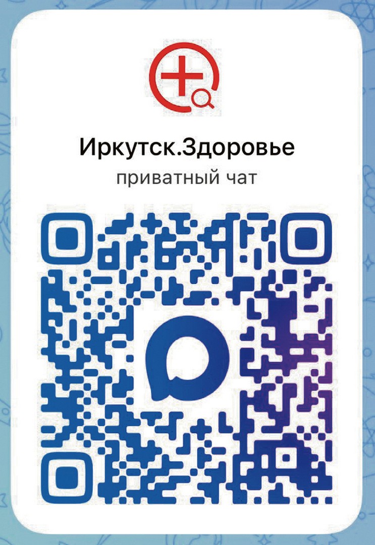 Наведите свой смартфон на этот QR‑код, и вы сможете присоединиться к медицинскому чату «Иркутск. Здоровье». Написать обращение в медчат можно ежедневно с понедельника по субботу с 08:00 до 20:00