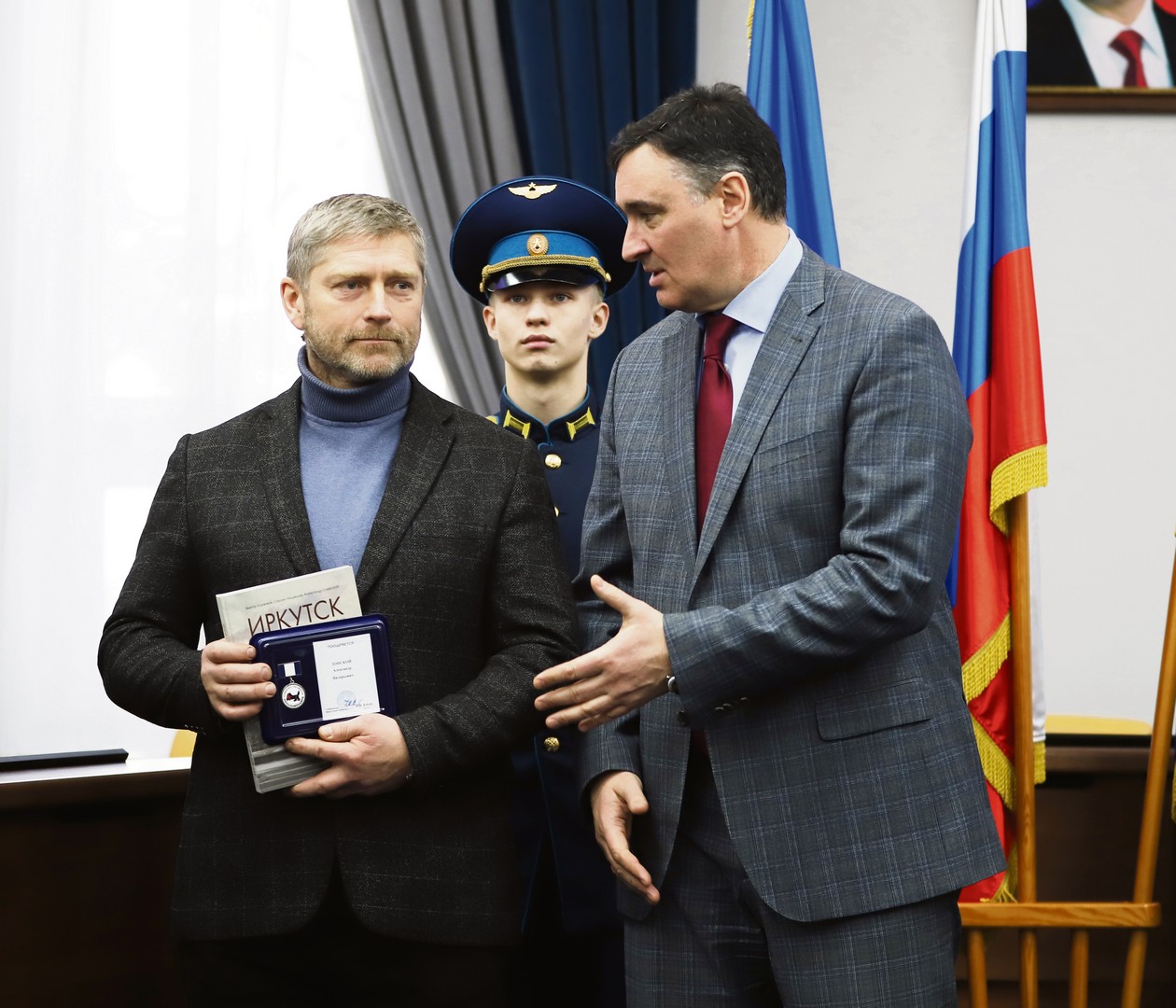 Александр Донской, участник охотничье-рыболовной секции Иркутского регионального отделения Всероссийского физкультурно-спортивного общества «Динамо», вместе со своим коллективом наладил четкую, слаженную систему по передаче ружей на передовую. В момент, запечатленный на снимке, наш мэр Руслан Болотов говорит о том, как он был удивлен, узнав, что многие иркутяне отдавали на фронт дорогое коллекционное оружие, потому что «для победы за ценой не постоят». Более 580 ружей иркутяне направили в зону СВО!