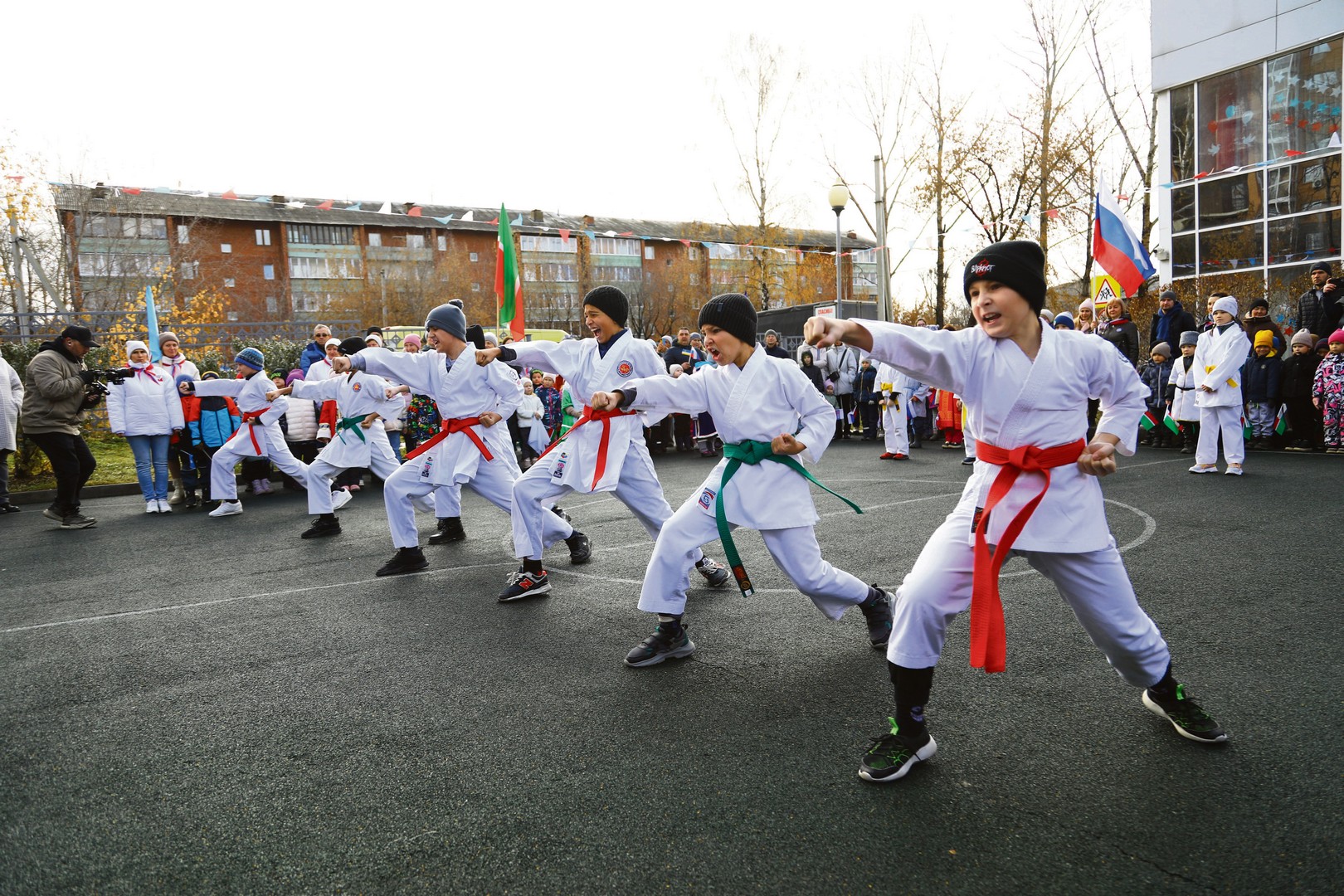 Установка триколора над детским садом № 176 на улице Мухиной стала праздником: на мероприятии выступили артисты Иркутского городского театра народной драмы, объединения СК «Суворовец», спортсмены по рукопашному бою, а также педагоги и воспитанники дошкольного учреждения