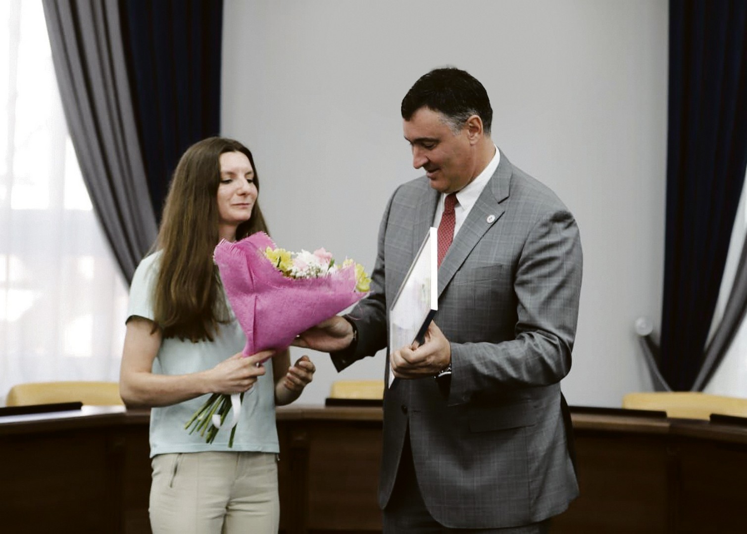 Мэр города Руслан Болотов встретился с победителями конкурсов Фонда президентских грантов в июле этого года и поблагодарил их за высокую социальную ответственность и вклад в развитие областного центра. Руководитель автономной некоммерческой организации «Учебно-дрессировочный центр «Пес Ученый» Анна Горчакова получила благодарственное письмо главы города за реализацию общественно значимого проекта по повышению уровня культуры собаководства