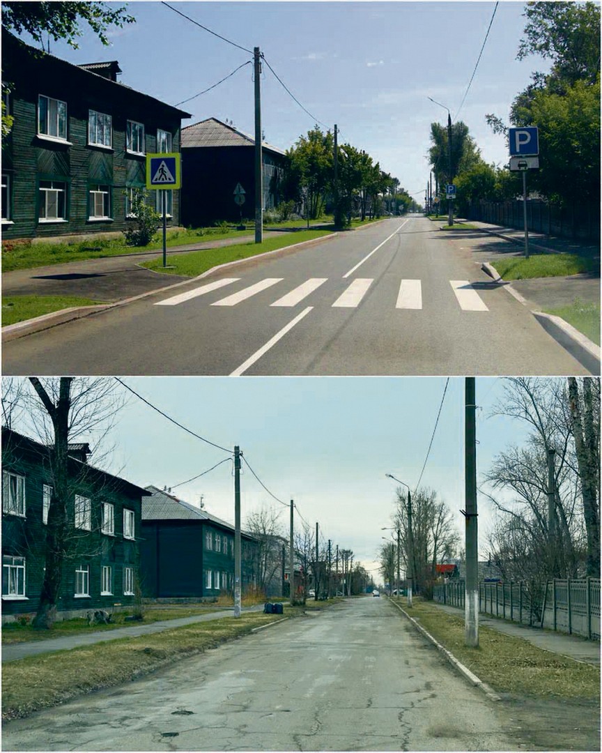 Улица Крымская до и после ремонта‑2025. Новый асфальт, тротуары, газон, заездные карманы, разметка и дорожные знаки — эту дорогу в Иркутске II обновили по национальному проекту «Инфраструктура для жизни»