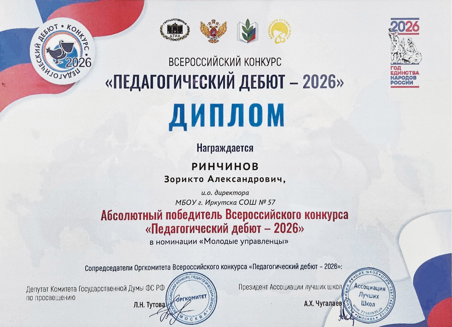 Воодушевленный успехами, в декабре Зорикто Александрович подал заявку на участие во всероссийском конкурсе «Педагогический дебют — 2026» в номинации «Молодые управленцы».