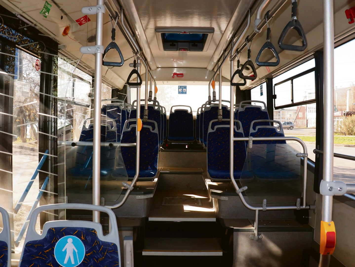 Автобус КамАЗ‑4290 (длина салона — девять метров) относится к среднему классу, вместимость — 70 мест, из них 25 сидячих. Четыре места выделены для инвалидов, кроме того, в районе средней двери установлена механическая аппарель — площадка, которая опускается на асфальт, чтобы маломобильный пассажир или мама с коляской могли легко заехать в салон. В середине автобуса выделена широкая накопительная площадка с поручнями разного уровня.